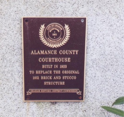 The plaque says that the courthouse was built in 1923 to replace the original 1851 one.