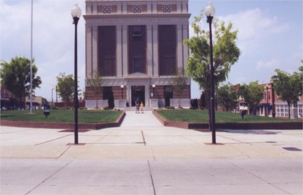 Another courthouse set in a square. The cornerstone of the building was dated 1930. This courthouse has the Confederate soldier Memorial as well as other war memorials.